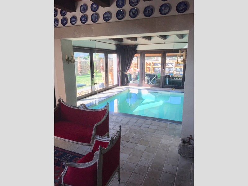 In zona signorile, tra fontane bianche e cassibile, stupenda villa di recente costruzione. Recinzione della proprieta' con muro a secco, cancello elettrico che accede ad un grande garage con ampia apertura automatizzata. La villa e' realizzata su due livelli, ed ha una piscina interna coperta riscaldata, con sistema di trasformazione del sale in cloro, e con sistema idromassaggio. al piano terra ampio salone, un grande bagno, ed una cucina di generose dimensioni che si affaccia su una enorme veranda chiusa interamete a vetri. Al piano superiore, troviamo 4 camere e due bagni. Piscina esterna di bune dimensioni su solarium in teck rialzato. La scelta dei materiali minuziosa e di altissimo pregio e qualita' fanno della villa un immobile di assoluto prestigio. (Rif.104)