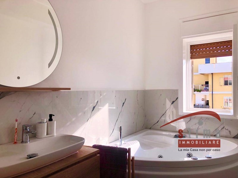 Vendesi moderno e luminoso appartamento totalmente ristrutturato 3 vani 109 m² + garage di 18 m² all'interno dello stesso stabile. L'appartamento è situato al 7° e ultimo piano di un condominio ascensorato e recintato con posto auto assegnato, e gode di una stupenda vista mare scoperta da entrambe le esposizioni. Composizione: ingresso su salone doppio con balcone, cucina abitabile con veranda chiusa (amovibile) regolarmente sanata con angolo lavanderia, 2 ampie camere da letto, 2 bagni di cui uno comprendente una vasca idromassaggio a 6 uscite con getto a cascata e cromoterapia, esposizione angolare, doppi infissi, climatizzatori con pompa di calore caldo/freddo, impianto elettrico e idrico nuovo e a norma. Compreso di mobilio Caratteristiche aggiuntive: comoda rampa per accesso ai disabili, cortile con giardino e campetto da calcio adiacente alla pista ciclabile, ampio terrazzo condominiale. Prezzo: 98.000,00