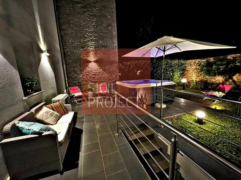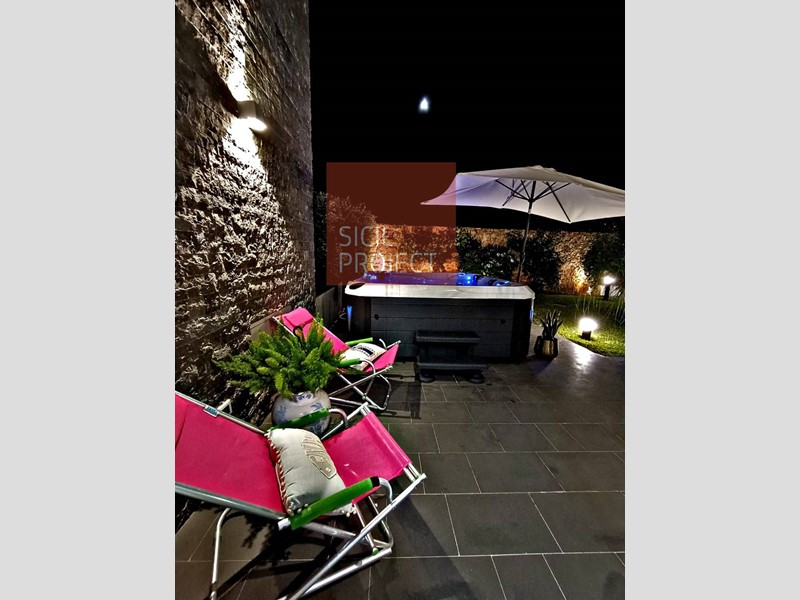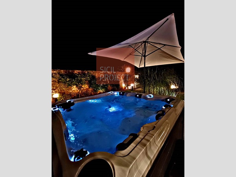 L'immobile, porzione di villa bifamiliare, è totalmente arredato e dotato di ogni comfort: gli spazi esterni, delimitati da siepi e da un muro di recinzione centenario in pietra e tufo antico in cui sono incastonati fossili di conchiglie risalenti a centinaia di anni fa , vi accoglieranno con una vasca idromassaggio, la Devotion Spa di Passion, l'unica che con tre lettini lounge completi e due semi lettini, è in grado di offrire posti lounge per cinque persone. La Spa Devotion è, inoltre, dotata di un sistema di idroterapia dedicato alla schiena con lacqua che massaggia dal basso verso lalto fino al collo, di un sistema audio Bluetooth e dell' esclusivo sistema Synergy Water, che crea automaticamente acqua fresca e pulita, rendendo questa nuova Spa una combinazione di relax e di efficienza energetica grazie alle sue 82 bocchette idromassaggio.
