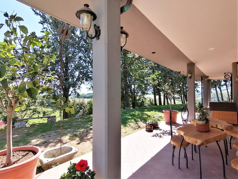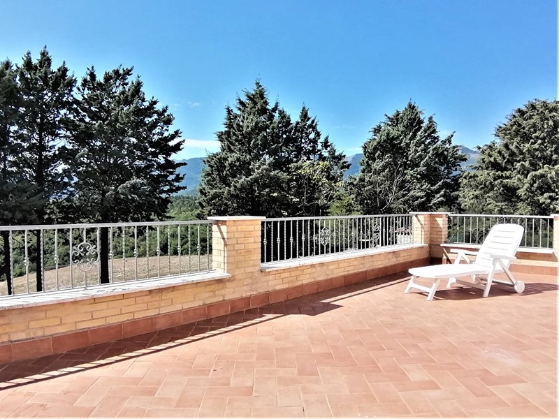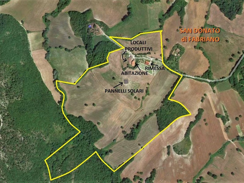 In posizione dominante e soleggiata sulle colline marchigiane, in Frazione San Donato tra Fabriano e Sassoferrato, l'Agenzia Immobiliare Ninno vende caratteristico casolare con terreno. La villa è composta da una grande zona giorno al piano terra con due ampi portici a godimento del giardino e del panorama esterno. Al piano superiore sono presenti ben 4 camere matrimoniali, una terrazza solarium di 65 mq e studio, da cui si accede alla soffitta praticabile corredata di telescopio professionale dal quale poter ammirare la volta stellata. La casa è provvista di impianto di riscaldamento e 4 condizionatori a pompa di calore collegati a pannelli fotovoltaici da 20 Kw. Come pertinenze sono presenti garage doppio, grande cantina, magazzini per circa 300 mq comprensivi di attrezzatura professionale da falegnameria, laboratorio di macelleria, granaio, oltre ad una rimessa di circa 175 mq con altezza di 5 m. Sono inclusi anche diversi macchinari, attrezzature e mezzi agricoli. Gli edifici sono circondati da terreno di proprietà per circa 21 ettari quasi tutto seminativo, orto, frutteto con circa 60 piante, una vigna con 400 viti (produzione media 12 q.li vino/anno) ed un bosco con una ventina di querce secolari. I terreni sono dotati di impianto di irrigazione con autoclave collegato a 4 pozzi perenni. La proprietà è interamente recintata con cancelli automatici ed impianto avanzato di telecamere. L'ottimo prezzo e la splendida cornice naturale, fanno di questa proprietà un'eccellente opportunità per una tranquilla residenza o per una struttura turistico/ricettiva o azienda agricola (con contributi PAC già concessi). Maggiori informazioni in Agenzia.
