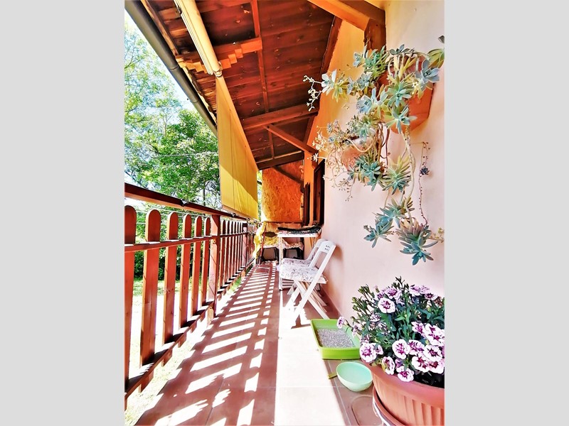 In zona periferica e tranquilla di Fabriano, l'Agenzia Immobiliare Ninno propone in vendita un grazioso appartamento di mq 50 distribuiti su unico livello, con ingresso indipendente. Dall'accogliente giardinetto di mq 45 si accede all'abitazione posta al primo piano, collegata da scala con bel terrazzo di mq 9. L'ingresso apre su una luminosa saletta con cucina a vista, poi troviamo una camera matrimoniale, una camera singola ed un disimpegno con bagno finestrato e box doccia. Completa la proprietà uno spazioso garage di mq 25 con posto auto frontale di altrettanti mq 25. L'immobile è riscaldato con impianto privato a gpl ed una pratica stufa a legna che si trova nella zona giorno, capace di scaldare economicamente tutti gli ambienti. Parte della mobilia può essere compresa nell'acquisto.