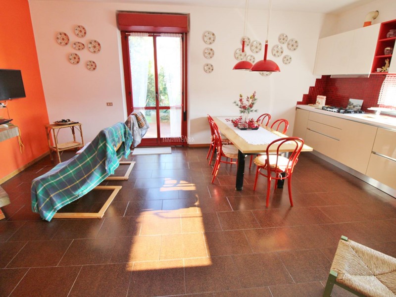 -Piano Primo: collegato da doppia scala interna ed esterna, troviamo una ampia cucina con camino, dalla quale si accede a terrazzo e giardino, ampia camera matrimoniale con affaccio sul giardino, bagno finestrato con doccia, al piano rialzato ampio soggiorno con accesso all'esterno.