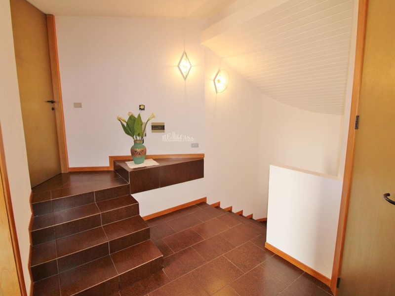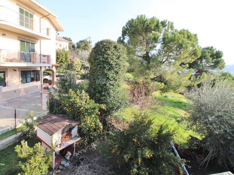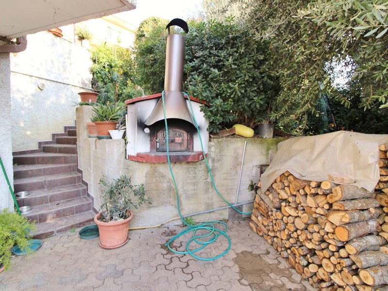 Completano la proprietà una corte pavimentata esterna perimetrale di circa 750 mq, suddiviso parzialmente a giardino e terreno adibito ad orto, completo di barbecue e forno a legna, piantumato con albero da frutto ed ulivi, doppio accesso con cancello pedonale e cancello carrabile.