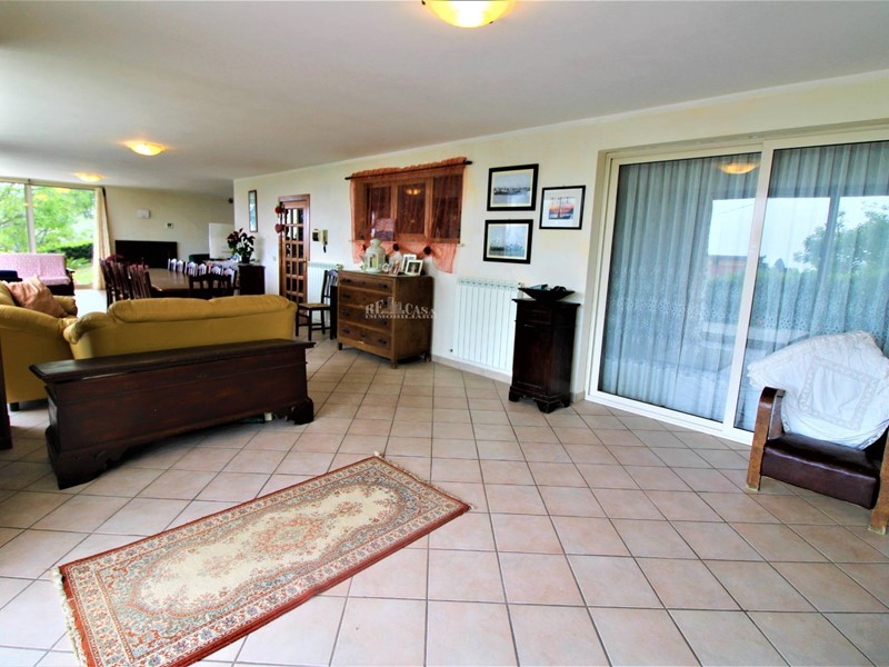 Piano terra di mq 135, composto da ampio salone e cucina a vista, con balcone panoramico con vista mare, tre camere da letto matrimoniali, due bagni con finestra, uno con doccia a l'altro con bagno, ed una stanza da adibire a quarta camera o studio. Pavimento in monocottura nella zona giorno, piastrelle nei bagni e parquet nelle camere. Finestre in alluminio, tapparelle, riscaldamento con termosifoni alimentati da caldaia con bombole GPL posto in giardino, camino nella zona giorno.