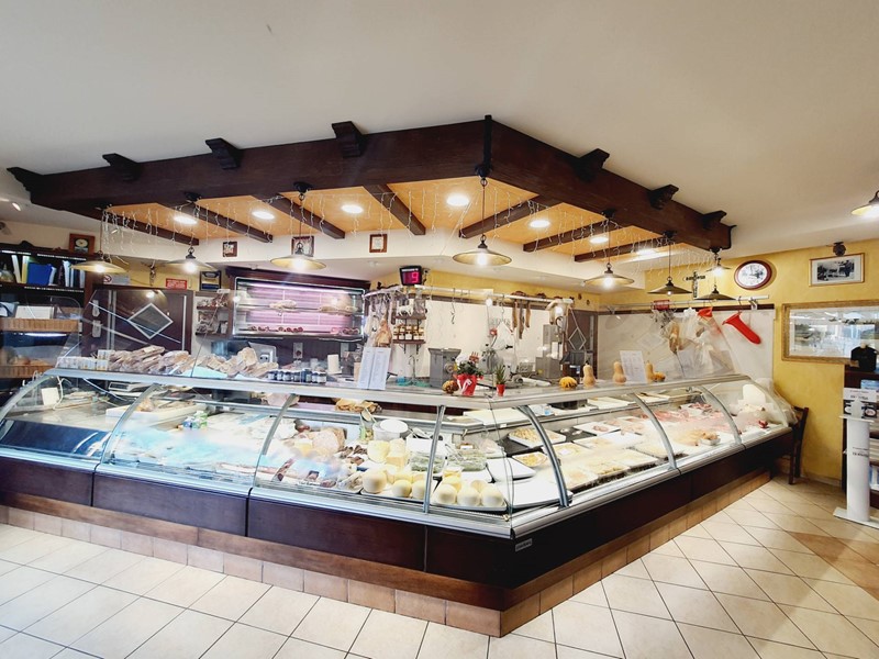Risulta essere composto da due locali separati, una zona adibita alla vendita ed esposizione dei prodotti, completo di bancone refrigerato, vetrina e scaffalatura necessaria all'esposizione della merce in vendita, un altro ampio locale sul retro, adibito ai laboratorio, per la conservazione, e preparazione dei prodotti in vendita, inoltre vano adibito a servizi per il personale. Tre vetrine con doppia esposizione.