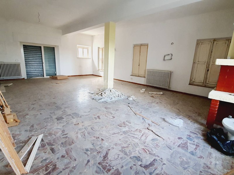 L' immobile è così suddiviso: piano terra appartamento da rifinire con ingresso autonomo, di 79 mq, composto da: ampio salone con camino, cucina abitabile, un bagno con doccia e finestra, un ampio ripostiglio, un locale magazzino di 64 mq.