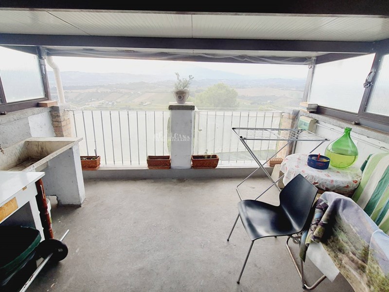 Rifinito con pavimentazione in cotto, entusiasmante vista panoramica, sia dal balcone che dal terrazzo, camino nel soggiorno del primo piano, vetri singoli con infissi in legno.