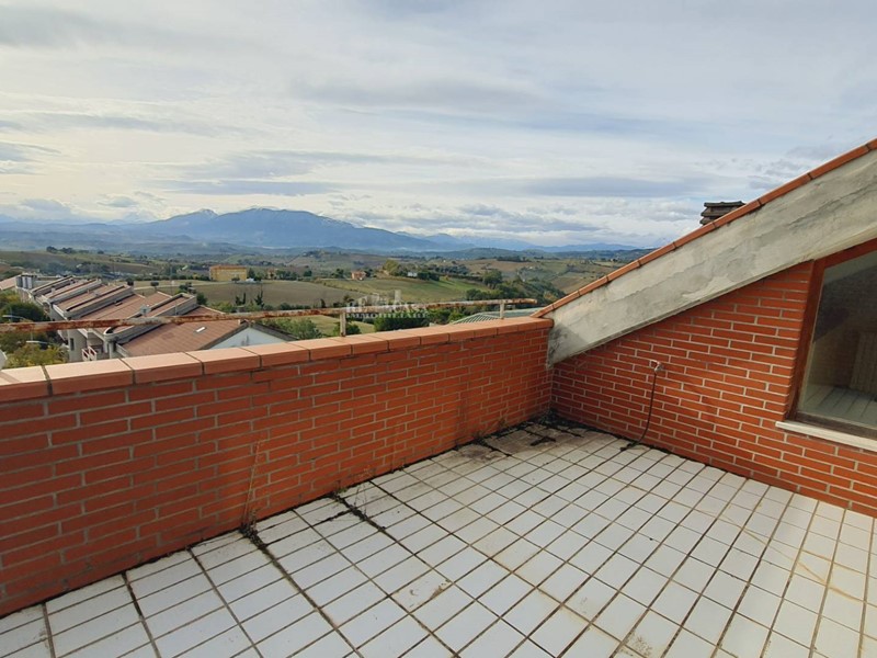 Appartamento di 120 mq con ingresso tramite scale in noce motenia, ampio soggiorno, cucina a vista, due ampi terrazzi, con bellissima vista panoramica, disimpegno che collega, tre camere di cui una matrimoniale e due singole, due bagni con finestra, uno con vasca.