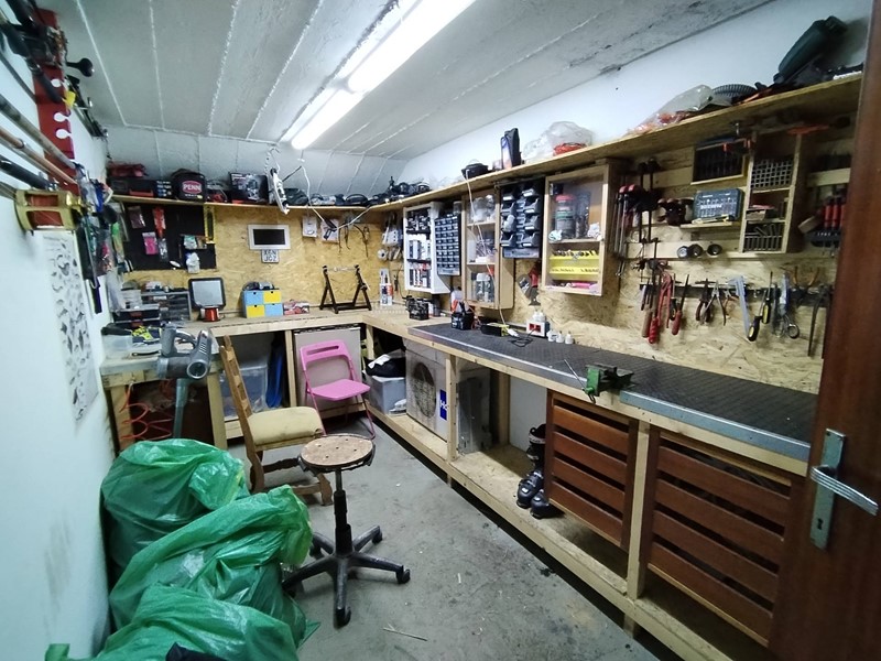 Fornito di ampio garage ( con ingresso limitato in altezza al 1.80 mt) al piano seminterrato e cantina per complessivi 50 mq con prezzo da computare a parte (costo 50.000,00 euro).