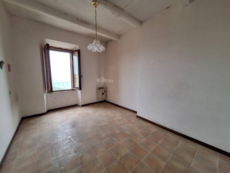Piano terra: superficie di 88 mq, ingresso da piano strada, disimpegno, ripostiglio, bagno con aspirazione forzata, cucina con camino, soggiorno con esposizione lato sud, bellissima vista panoramica sul borgo e sul territorio circostante, dal mare alle montagne,