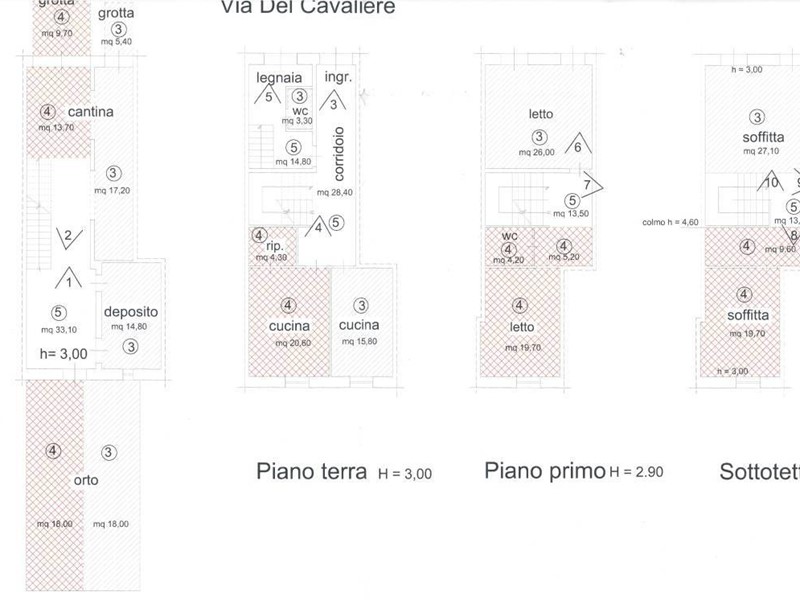 Piano seminterrato: superficie di 94 mq, accesso dalla via principale si accede tramite scala, è composto da cantina, deposito, grotta con volte storiche caratteristiche, porta finestra che da accesso accesso al giardino di 36 mq lato sud;