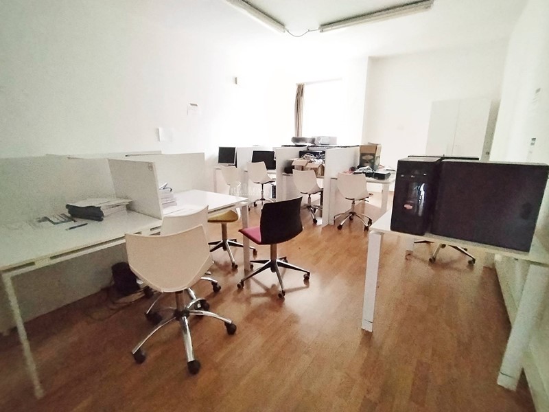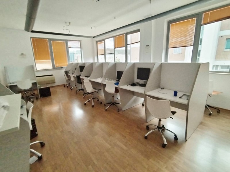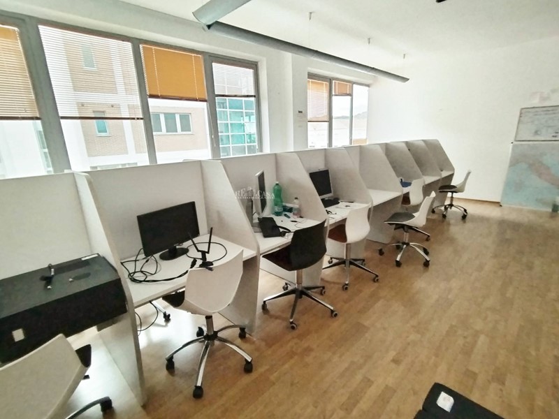 Il locale commerciale di 208 mq, posto al primo piano, raggiungibile da scala interna o ascensore, è completo di 9 finestre che rendono gli ambienti luminosi, parzialmente arredato con due uffici padronali e 3 sale complete di scrivanie e posti a sedere, adatti a call center, ampio bagno e antibagno a norma.
