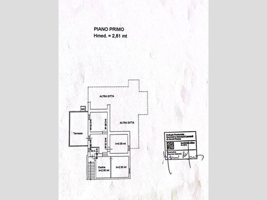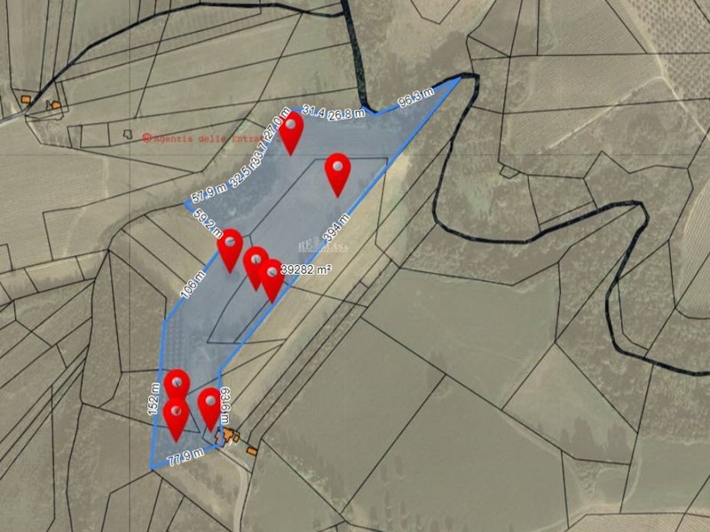 Completano la proprietà, un fondaco di 4 mq, un fienile, un ampia corte esterna pianeggiante, ed incluso nel prezzo, terreno di 40.000 mq, in gran parte seminativo, con piante ulivi e da frutto, con esposizione nord-ovest.