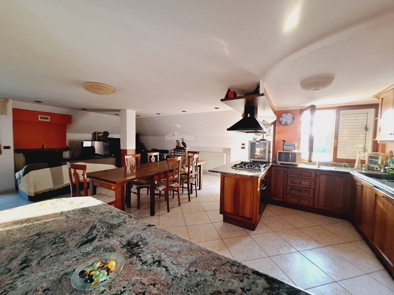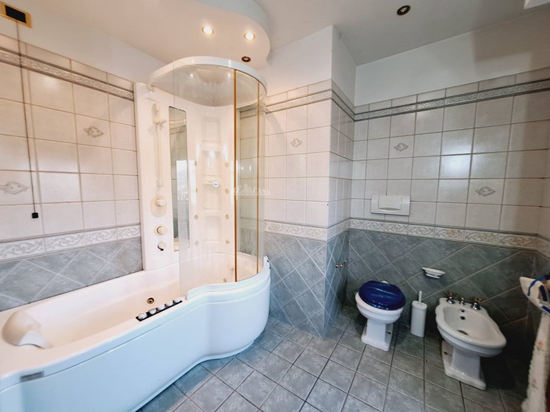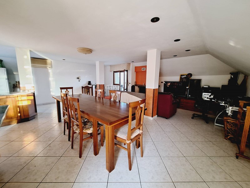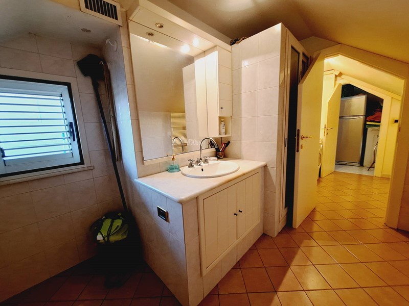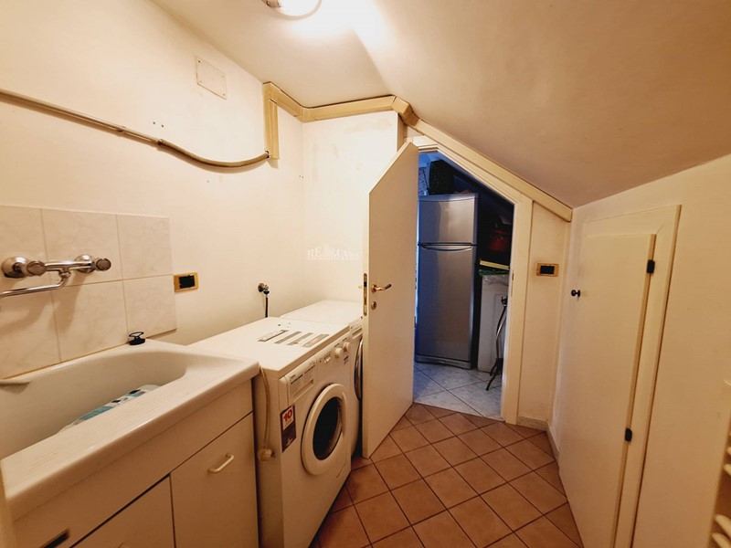 Al secondo livello di 80 mq calpestabili, si accede tramite scala interna, con alcune spiovenze ai lati, altezza massima 2,23 mt, minima 0.60 mt, ove sono stati ricavati vari ripostigli nel sottotetto, ampio salone con soggiorno e cucina arredata a vista, bagno con doccia, tre balconi per complessivi mq 15.