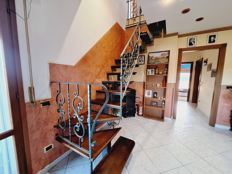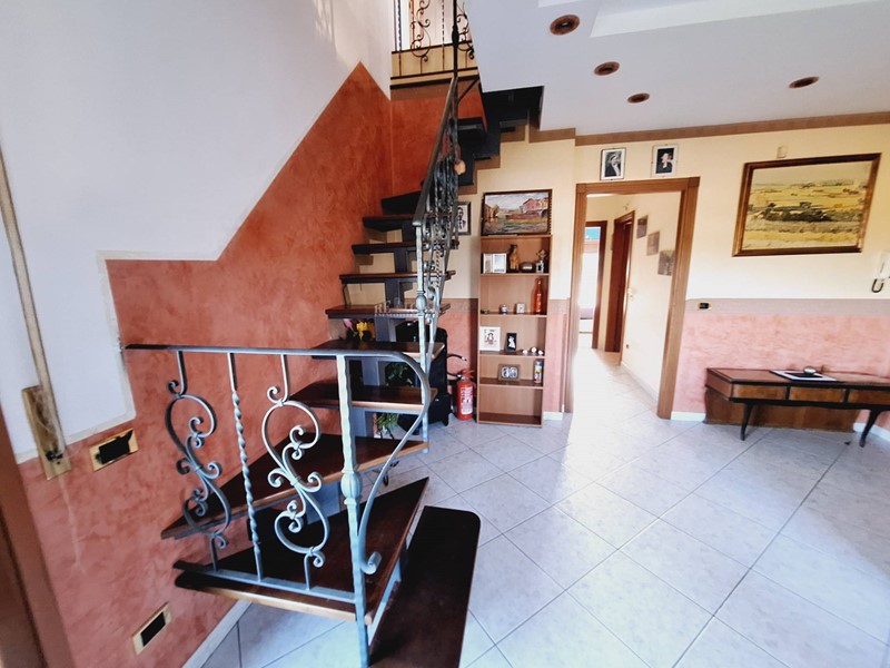 Rifinito internamente con pavimentazione in gres porcellanato, sull'intera superficie, infissi in legno con doppio vetro, tapparelle in pvc, portone di ingresso blindato, impianto di riscaldamento termoautonomo, termosifoni in ghisa, camino nel soggiorno al secondo livello, sistema d'allarme.