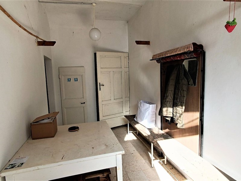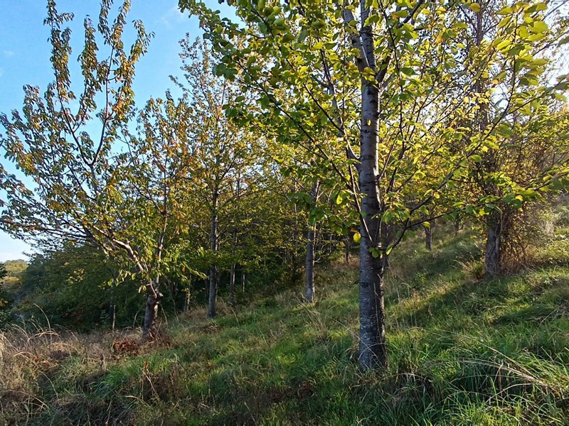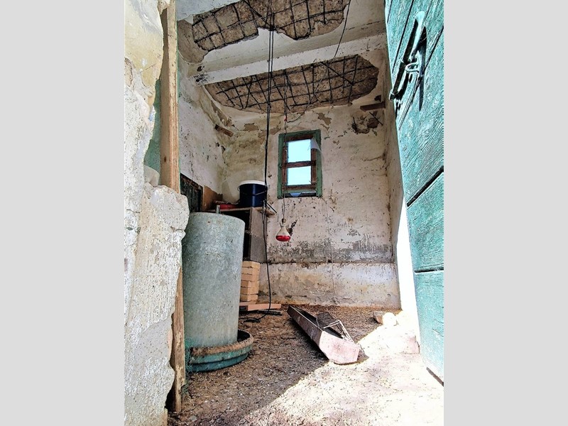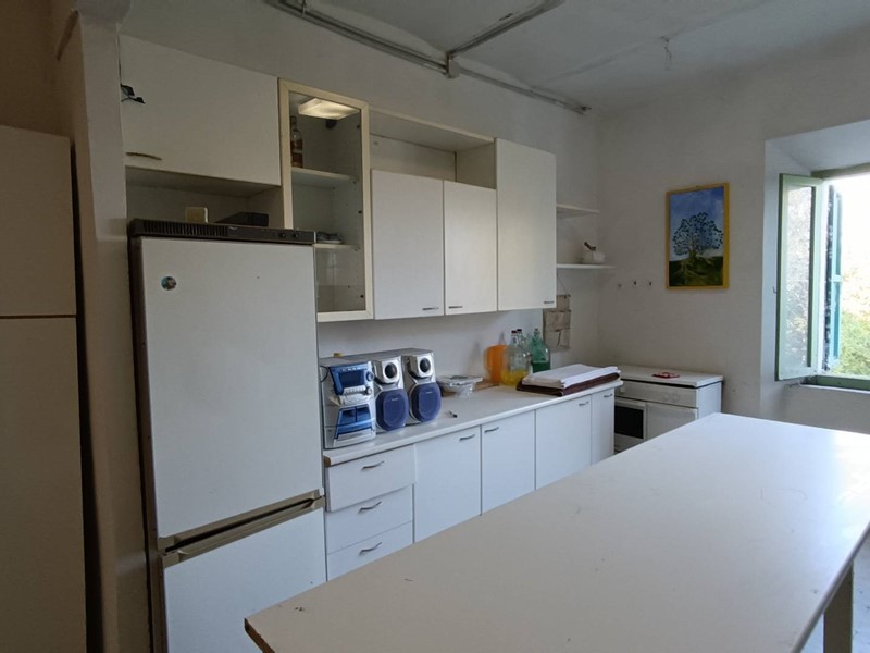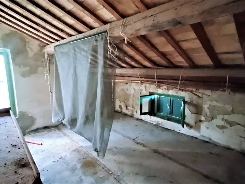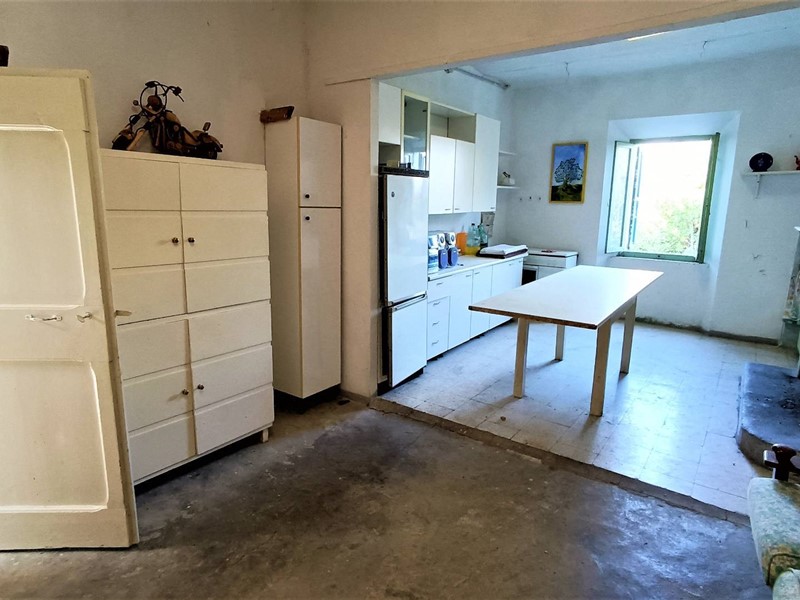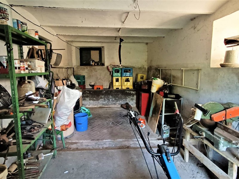 Il piano terra è di 70 mq composto da locali garage e magazzino; il primo piano di 70 mq soggiorno con cucina e camino e due camere da letto, piano sottotetto con travi in legno a vista collegato a mezzo scala interna dal piano sottostante . Il terreno di 10 ettari circa dotato di sorgente e vasca per la raccolta delle acque è piantumato con 900 alberi di ciliegio per la produzione di legna, e 450 di ulivo.