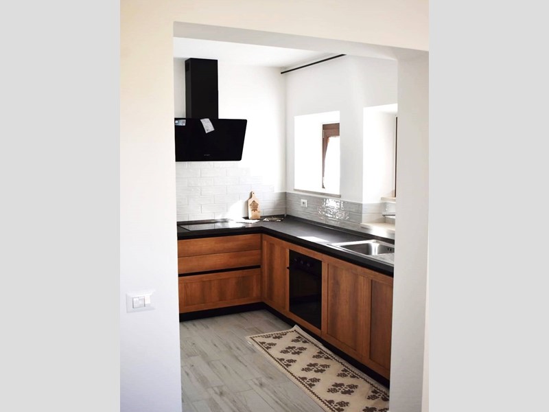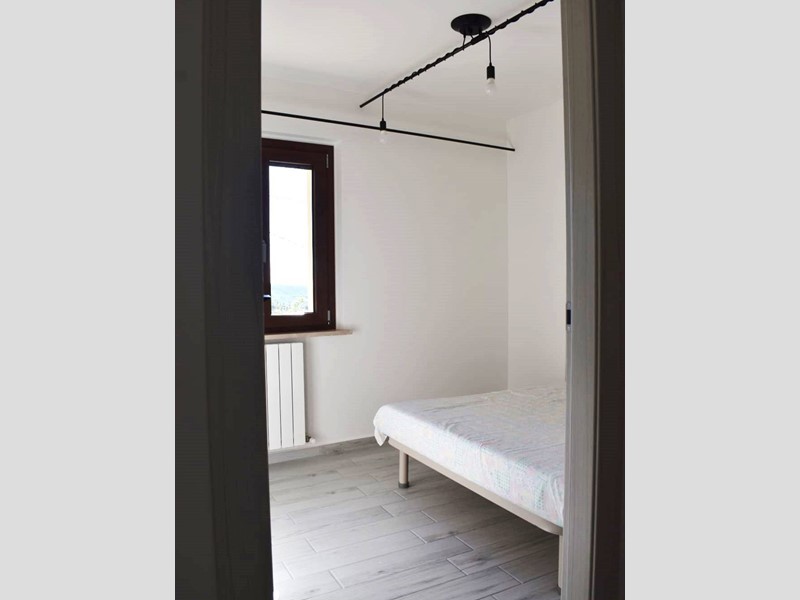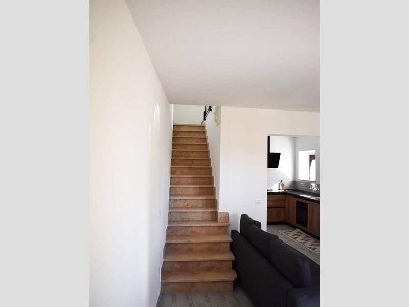 L'unità completamente ristrutturata di 95 mq totali è disposta su due livelli, libera su tre lati ed è cosi composta: al piano terra abbiamo un ampio locale adibito a soggiorno con cucina a vista e scala di accesso al piano primo, che è composto da una camera matrimoniale, una camera singola e bagno con doccia.