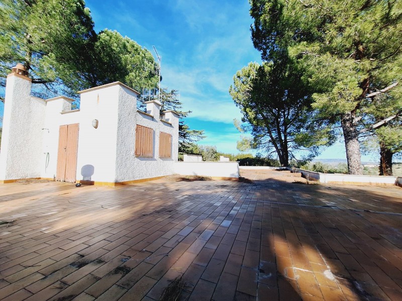 La villa, categoria catastale A/7, situata in una zona silenziosa, panoramica e collinare, a 10 km dal mare, è disposta su 305 mq, una corte di 2000 mq completamente recintata, costruita nel 1984 e in buono stato di conservazione.