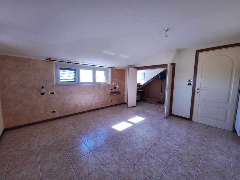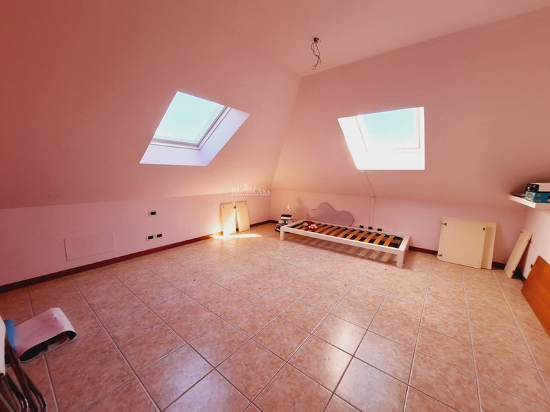 Piano sottotetto di mq 120; allestito come appartamento, con altezza massima 2,30 mt ed altezza minima 0,80 mt, composto da ampio salone con terrazzo panoramico lato sud, cucina abitabile, due ampie camere matrimoniale, uno studio/ripostiglio/cameretta, due bagni finestrati con vasca e doccia.