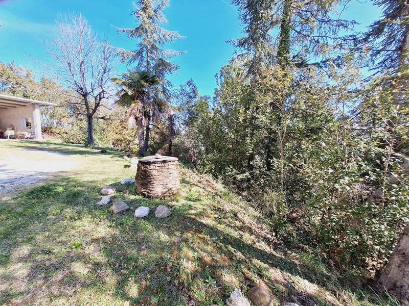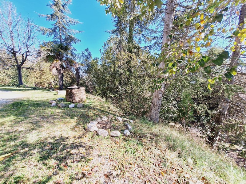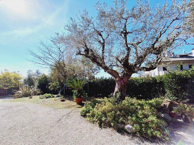 Il giardino è ben curato con alberi da fusto e da frutto ed ulivi.
