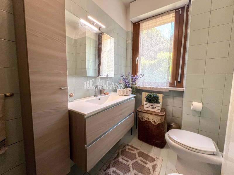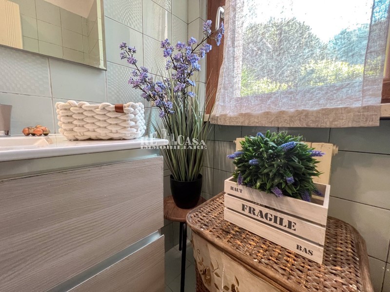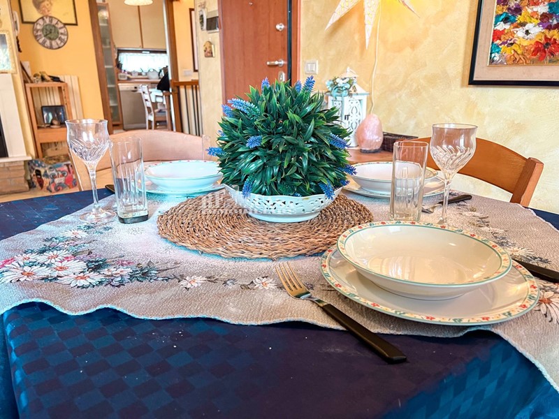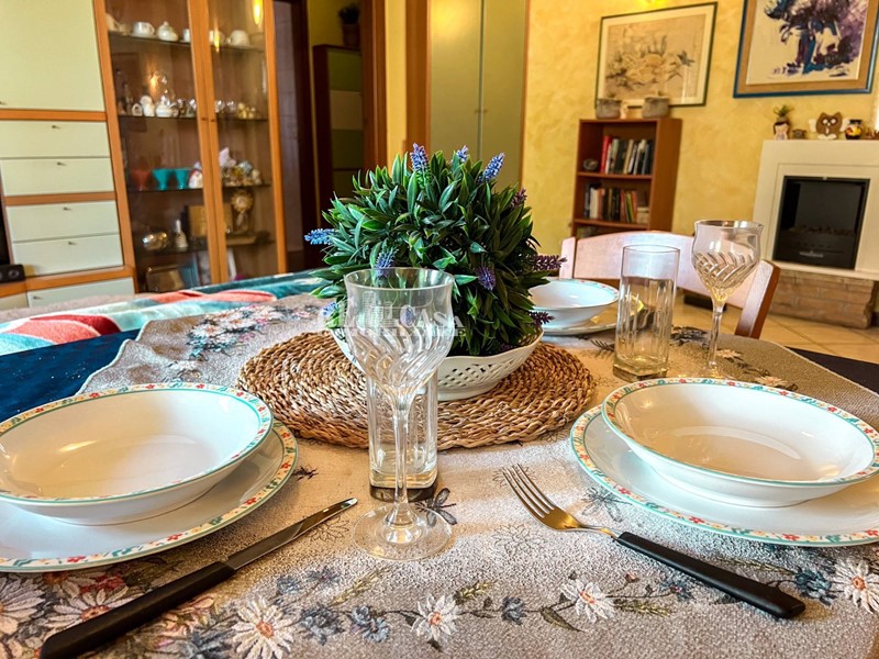 Appartamento al piano terra di mq 110 con ingresso su soggiorno, cucina abitabile, tre camere da letto di cui due matrimoniali di cui una padronale molto spaziosa ed una doppia, due bagni entrambi dotati di finestra di cui uno con vasca ed uno con doccia. Scala interna per accesso al rustico di mq 110 cosi suddiviso: ampio rustico, cucina abitabile, due camere da letto, un bagno, due locali ripostiglio. Completa la proprietà un garage di mq 24 al piano seminterrato e una corte esterna perimetrale a tutto l'appartamento per una superficie di mq 200 in parte a giardino ed in parte pavimentata. Esposizione nord - est - ovest.