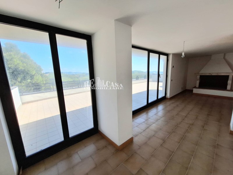 Piano attico di mq 100: composto da locale di sgombero con camino, lastrico solare pavimentato con vista panoramica verso il mare e le colline circostanti.