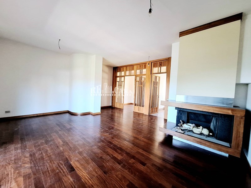 Piano terra rialzato di mq 85: si accede tramite comoda scala interna in granito, ed è composto da ampio soggiorno con camino, con angolo cottura, una camera matrimoniale, uno studio e bagno con finestra, pavimentazione in parquet su tutta la superficie, finestre in alluminio con doppio vetro e tapparelle in legno;