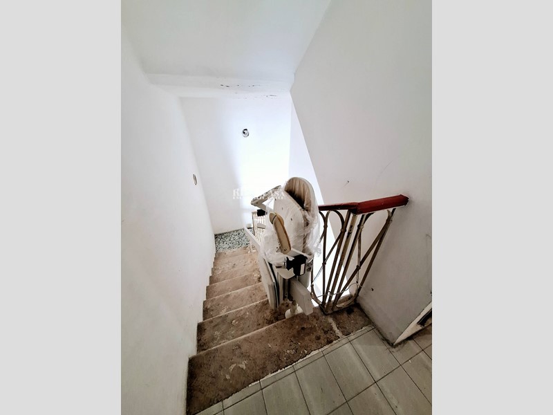 Appartamento al piano primo, di 90 mq, senza ascensore, fornito di montascale per persone con difficoltà motorie composto da ingresso su disimpegno, cucina abitabile con camino ed accesso ampio terrazzo di 20 mq, ampio soggiorno, tre camere da letto di cui due matrimoniali ed una singola, un bagno con vasca e doccia finestrato.