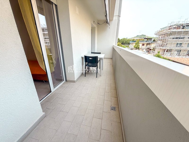 Appartamento al piano secondo di mq 80 con ingresso su ampio soggiorno, cucinino separato, due camere da letto di cui una matrimoniale ed una doppia, un bagno dotato di finestra con doccia, due balconi per complessivi mq 20 di cui nella zona giorno ed uno nella zona notte. Esposizione sud - nord.