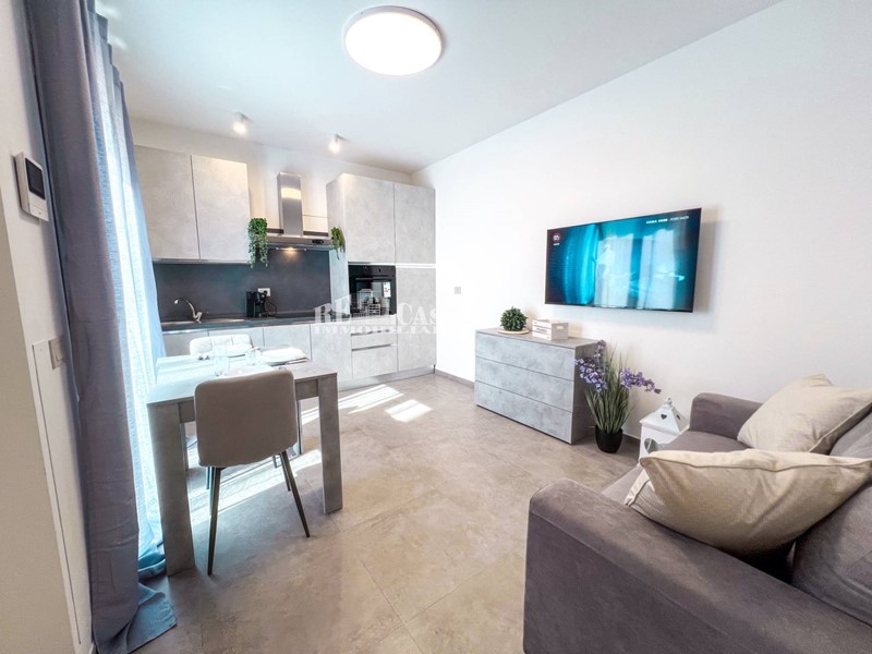 Appartamento di nuova costruzione di 39 mq al piano terra con ingresso autonomo facente parte di fabbricato signorile sviluppato su tre piani con sole 10 unità immobiliari. Composto da ingresso su soggiorno con angolo cottura, una camera da letto matrimoniale, un bagno con doccia, corte esterna di mq 13. Completamente arredato, e la mobilia di ottima fattura, inclusa nel prezzo. Immediatamente disponibile per l'acquisto con consegna a settembre 2025.