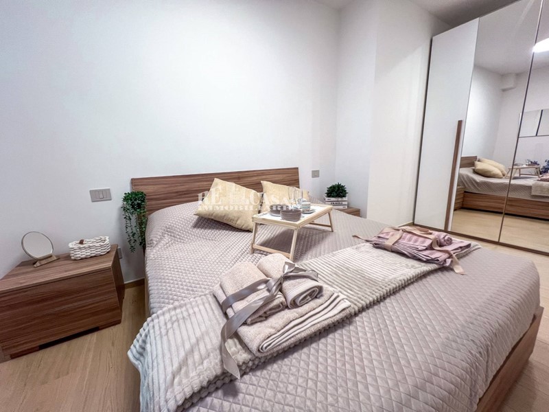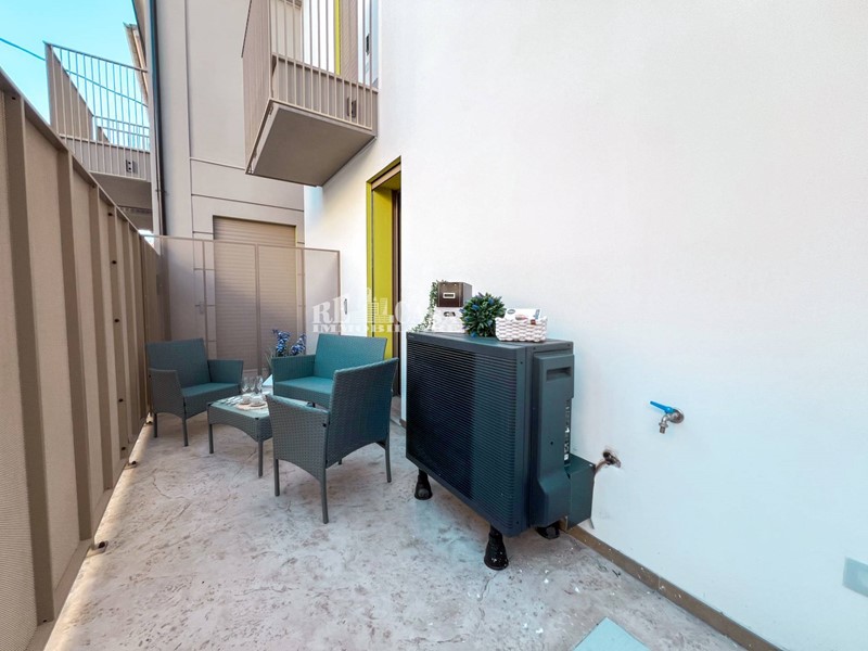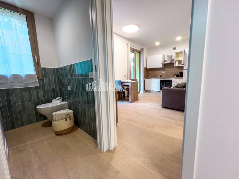 Appartamento di nuova costruzione di 42 mq al piano terra con ingresso autonomo facente parte di fabbricato signorile sviluppato su tre piani con sole 10 unità immobiliari. Composto da ingresso su soggiorno con angolo cottura, una camera da letto matrimoniale, antibagno e bagno con doccia e finestra, piccolo locale lavanderia, corte esterna di mq 19. Completamente arredato, e la mobilia di ottima fattura, inclusa nel prezzo. Immediatamente disponibile per l'acquisto con consegna a settembre 2025.