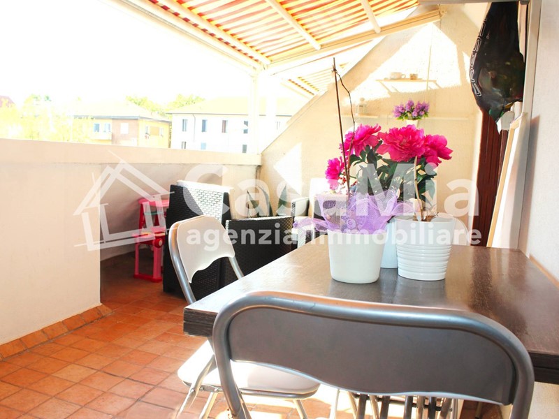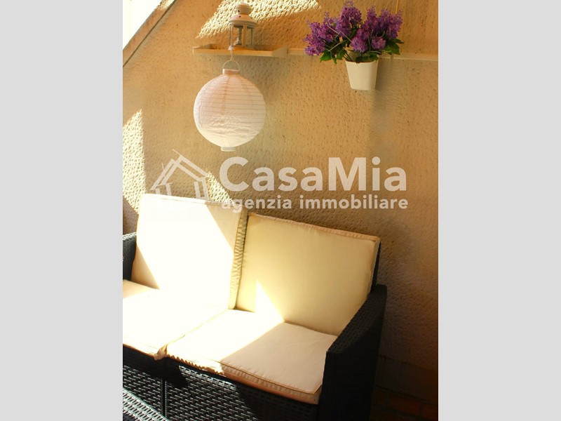 In piccola e graziosa palazzina, dotata di ascensore, elegante e ampio appartamento molto luminoso recentemente ristrutturato; la zona giorno è così composta: ingresso con porta blindata, comodo e funzionale ripostiglio, soggiorno doppio che comprende un'ampia zona pranzo con accesso a due splendidi terrazzi, uno più piccolo ed uno più grande, dotati entrambi di tenda da sole e dove è possibile consumare un piacevole pranzo all'aperto; il soggiorno comprende anche un angolo studio con scrivania ed un grazioso salottino con parete tv, infine la zona giorno è completa di una bella cucina abitabile e di bagno con doccia/lavanderia. Il disimpegno della zona notte è corredato di due comodi ripostigli a muro e conduce alle due camere: una matrimoniale molto spaziosa che permette l'accesso a uno dei terrazzi e una cameretta anch'essa di buona metratura; infine un altro bagno dotato di vasca. Entrambi i servizi sono finestrati e dotati di sanitari sospesi, recentemente ristrutturati.