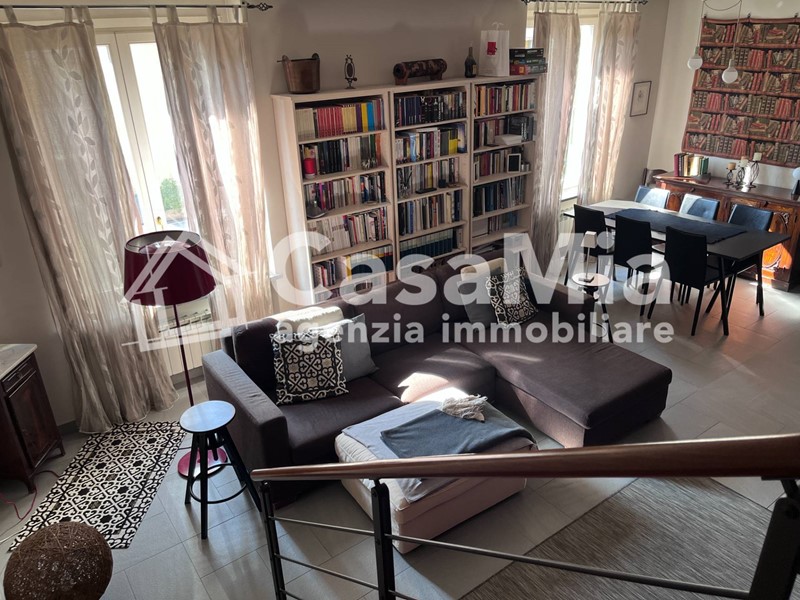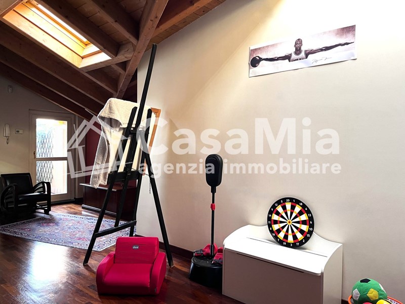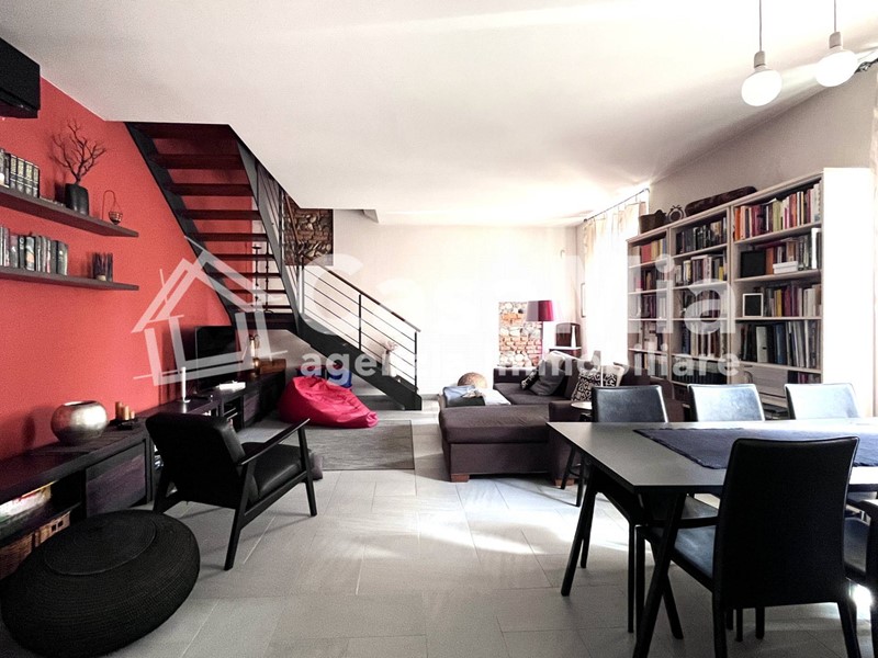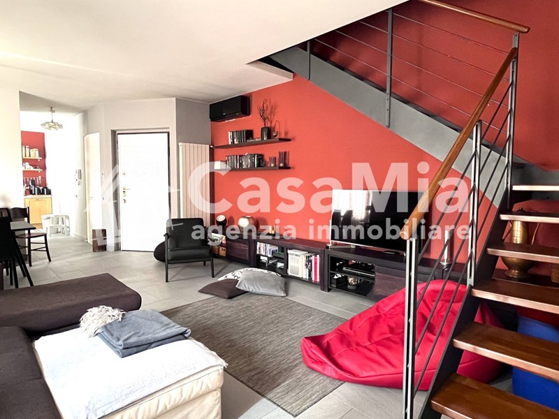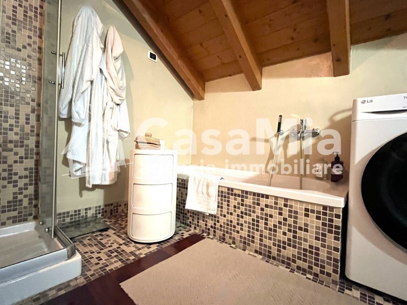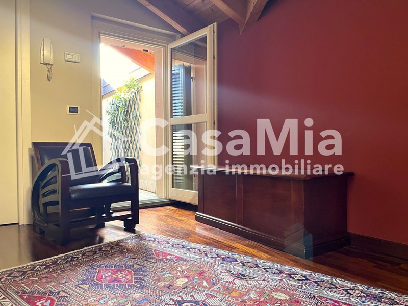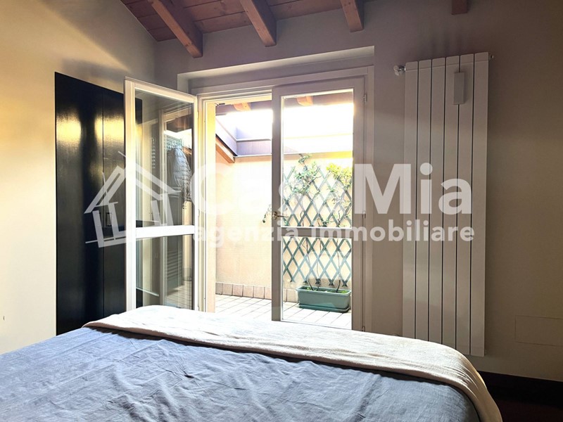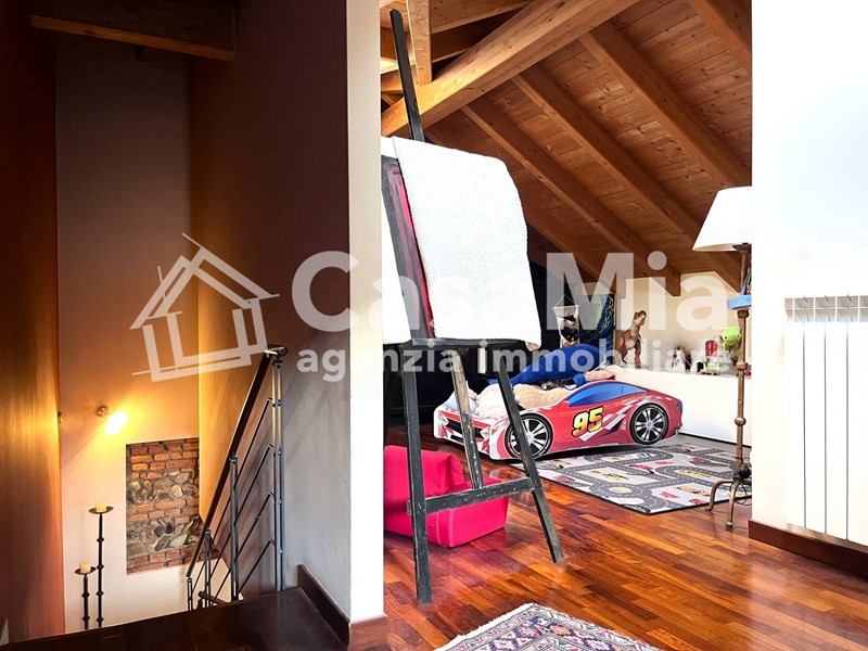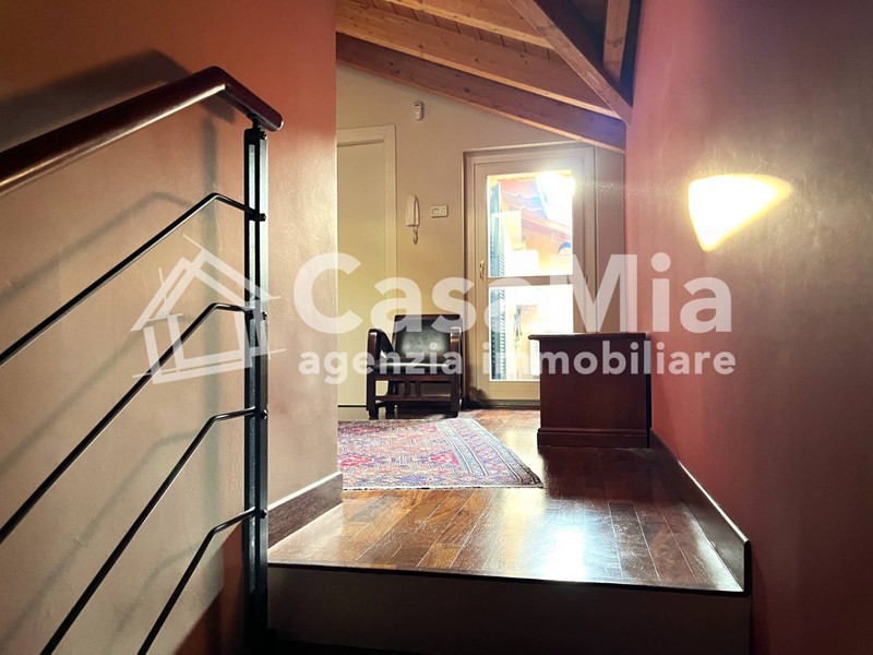 L'appartmento è inserito all'interno della rinomata Corte della Fontanella, in grazioso contesto composto da sole 7 unità immobiliari, l'appartamento è sito al primo piano ed è disposto su due livelli: la zona giorno è composta da ingresso con porta blindata, ampio e luminoso soggiorno, cucina abitabile servita da un balcone e bagno con doccia; una comoda scala in legno conduce alla zona notte mansardata, impreziosita da bellissime travi in legno, nella quale troviamo una camera matrimoniale con cabina armadio, una cameretta e un ampio bagno dotato di vasca e doccia. Da entrambi le camere è possibile accedere ad un grazioso terrazzino.