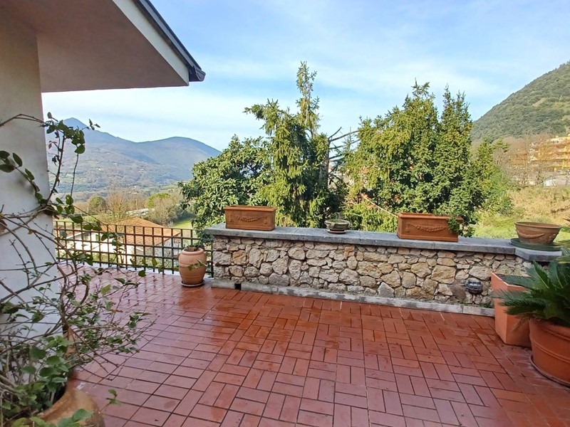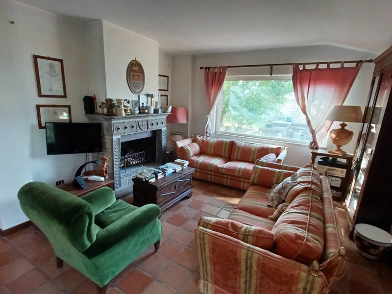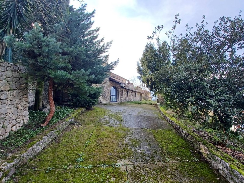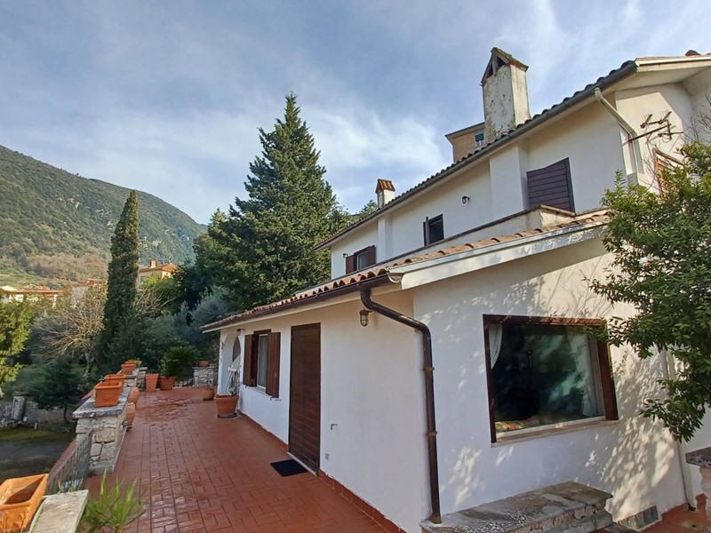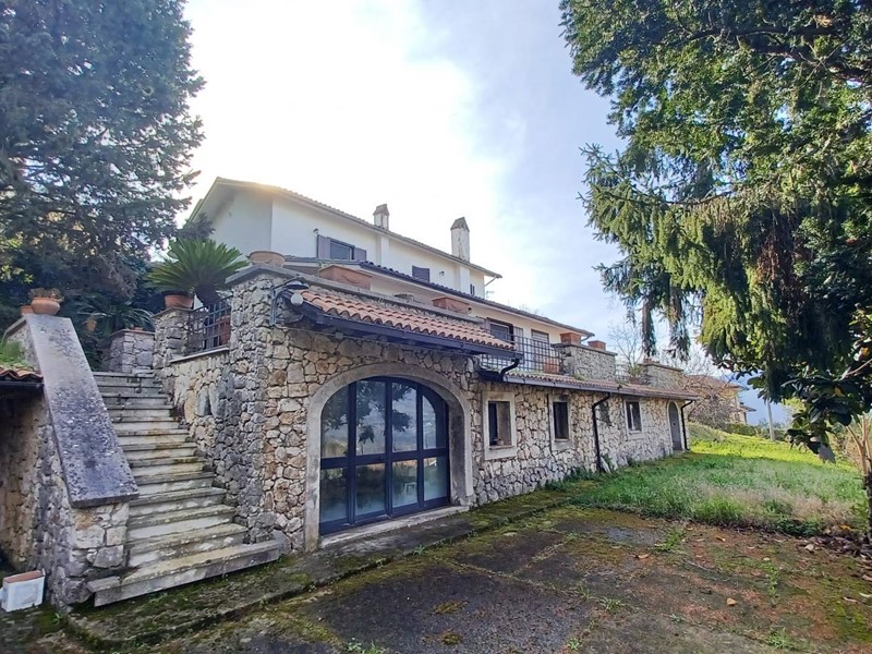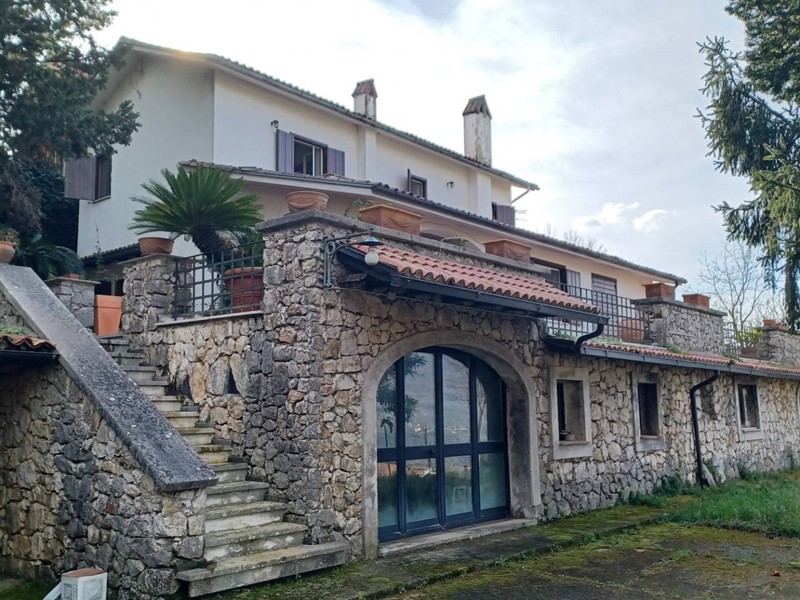 Giuliano di Roma, zona La Fontana, Via Santa Lucia proponiamo in vendita splendida villa con giardino. Abitazione disposta su due livelli di circa 200 mq, più rustico di circa 100 mq. Zona giorno, piano terra di circa 100 mq, composta da ampio soggiorno con splendido camino in pietra e grandi vetrate, cucina abitabile con altro camino in pietra, 1 camera, disimpegno e 1 bagno. Sempre al piano terra rialzato troviamo un portico e un terrazzo di circa 100 mq. Attraverso una particolare e caratteristica scala si arriva alla zona notte, di circa 90mq, composta da 3 camere, 1 bagno, altro portone di accesso all'abitazione e splendido terrazzo panoramico di circa 20 mq; in una camera da letto è presente un camino. Finestre in alluminio, zanzariere e persiane in legno, caldaia e termosifoni, utenze attive. Cancello automatico, proprietà interamente recintata.