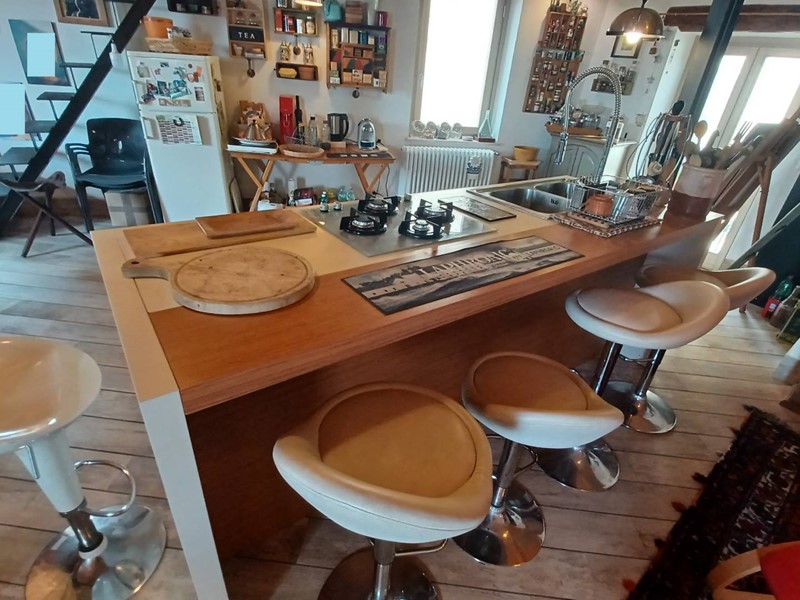 Maenza, in prossimità del Duomo, vendesi splendido appartamento al piano primo di circa 80 mq con caratteristico soppalco che ospita il letto matrimoniale e armadio su misura. L'abitazione è composta da uno spazio completamente aperto, con panorama sul litorale pontino, cucina a vista con bellissima e praticissima penisola, bagno con doccia. Riscaldamento a radiatori, caldaia a metano. Camino, finestre e persiane in legno. Due piccoli balconi che si affacciano sulla splendida Piazza del Duomo, ripostiglio aperto sopra il bagno. Completa la proprietà una cantina unica nel suo genere di circa 100 mq con cortile esterno. L'arredo dell'abitazione è da considerarsi a parte, 5.000.00.