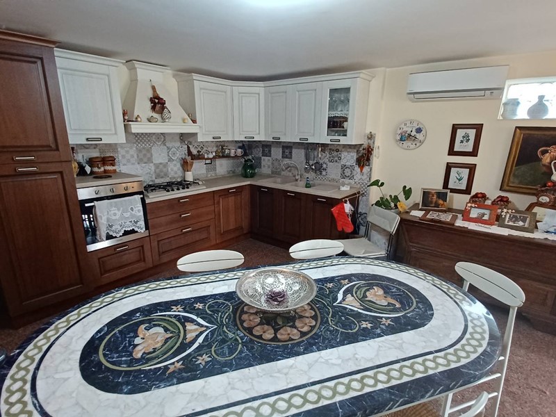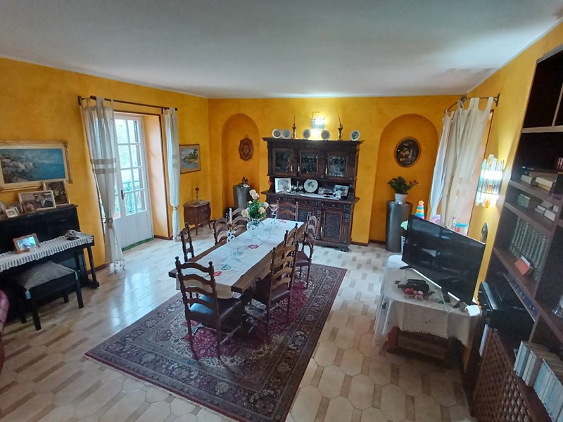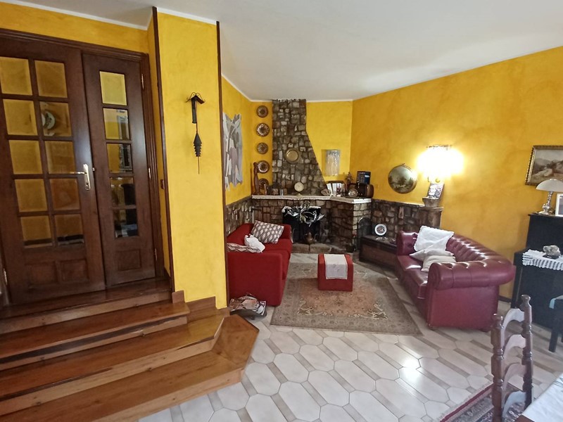 Nel piano rialzato troviamo un ingresso con cucina abitabile con termo-camino, un soggiorno, una sala con camino, 2 camere da letto ad altre 2 camere matrimoniali di cui una con bagno interno, un ulteriore bagno a servizio della zona notte ed un bagno a servizio della zona giorno.