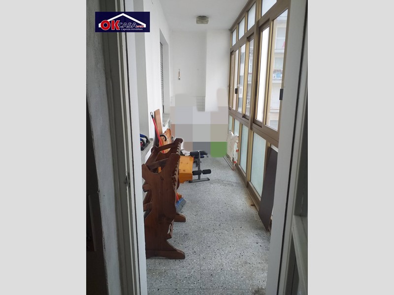 ingresso, corridoio, cucina abitabile, soggiorno, 2 camere letto, studio, bagno con doccia, balcone finestrato ( lavanderia), cantina.