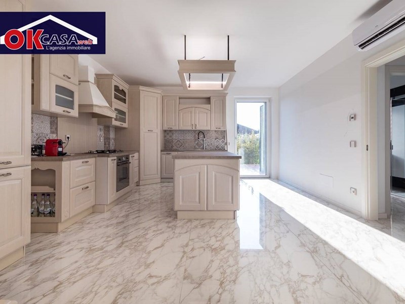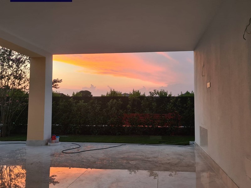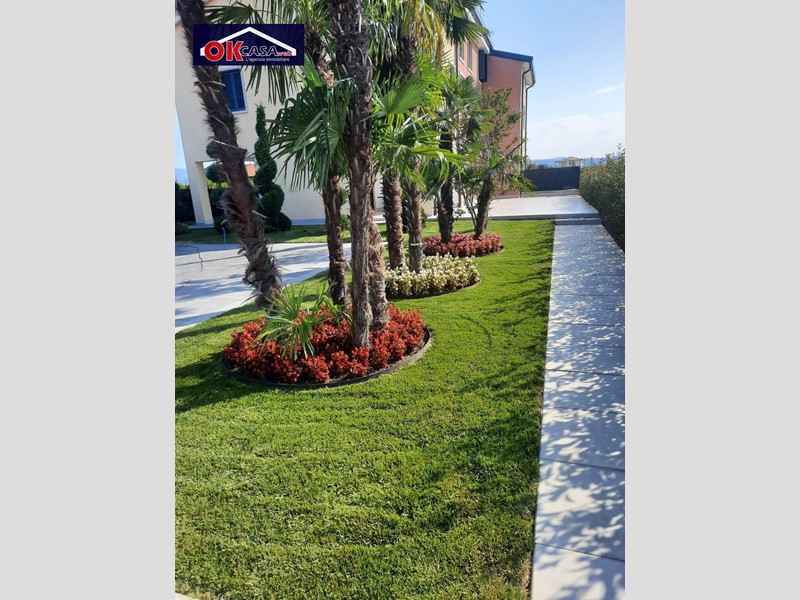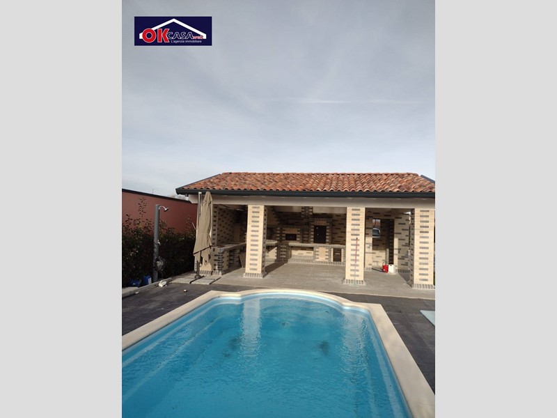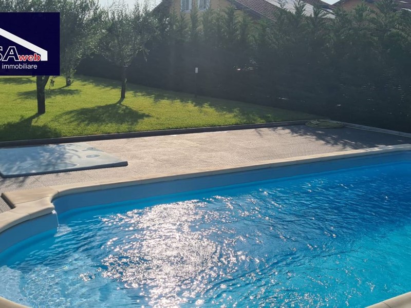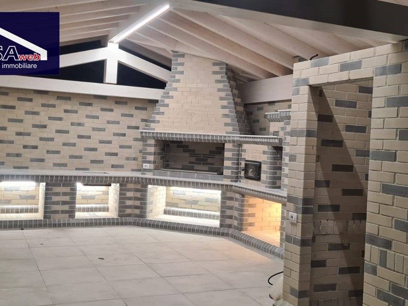 La villa si sviluppa su due livelli con al piano terra un ampio soggiorno cucina, bagno, ampio plateatico verandato, giardino 2 posti auto coperti piscina con portico con forno pizza, forno a legna e grill, al piano primo 3 camere matrimoniali di cui 1 con cabina armadio e bagno privato oltre ad un altro bagno per le altre camere.