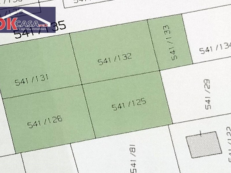 Le particelle che la compongono nella planimetria qui presente sono indicate come 541/125 (663mq) e 541/132(632mq) appartenenti al LOTTO 1 + 274mq adiacenti al parcheggio a sinistra contrassegnato sulla medesima planimetria con la particella 541/133.