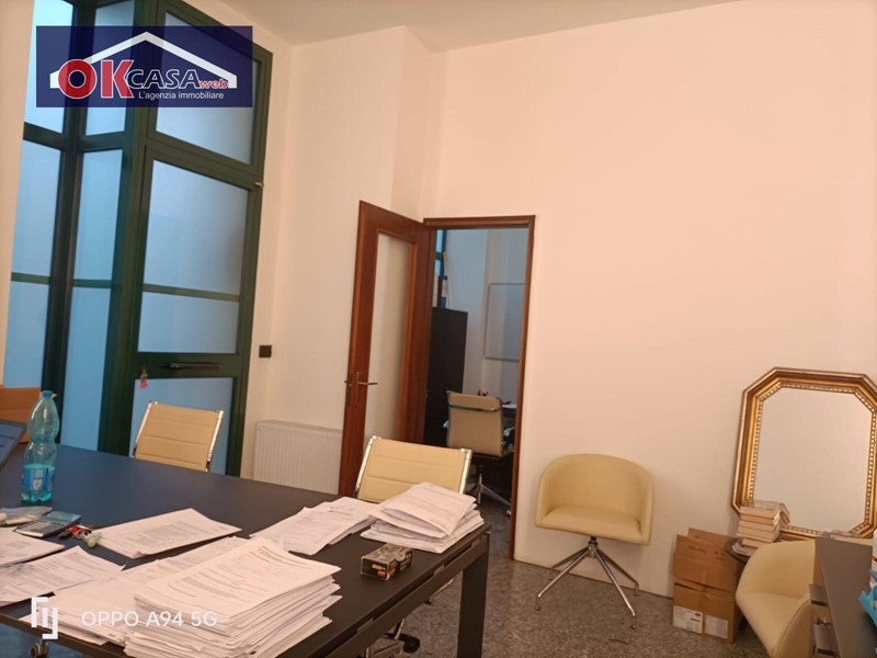 L'ingresso principale dà accesso ad un ampio e luminoso spazio open space, ideale per creare una zona di lavoro moderna e funzionale.