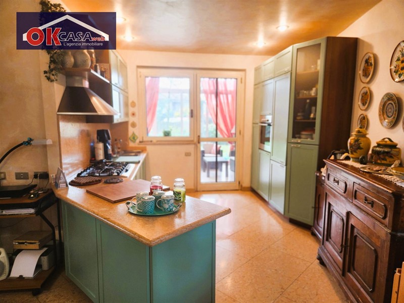 - Piano Terra: ingresso diretto al salone del grande soggiorno con camino e pavimento in marmo di Verona di varie sfumature che, per la sua grandezza, consente uno sguardo dinsieme da ogni punto del piano sulla festa o sulla pista da ballo! Una bella cucina abitabile accessoriata di tutto con ripiano di marmo ed un bagno completano il piano!