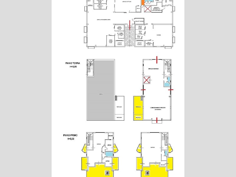 costituito da locale commerciale al piano terra di 280 mq., due uffici al primo piano di totali 270 mq. e locale produttivo al piano seminterrato di 800 mq. con altezza interna di 350 cm. con accesso carrabile, cucine e celle frigo