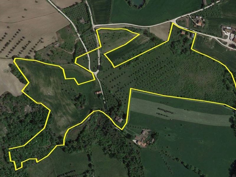 composto di 14 ha. di terreno in corpo unico e con varie pendenze, fra cui 2 ha. coltivati ad uliveto con più di 100 piante e 4 ha. coltivati a noceto