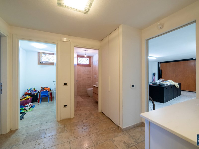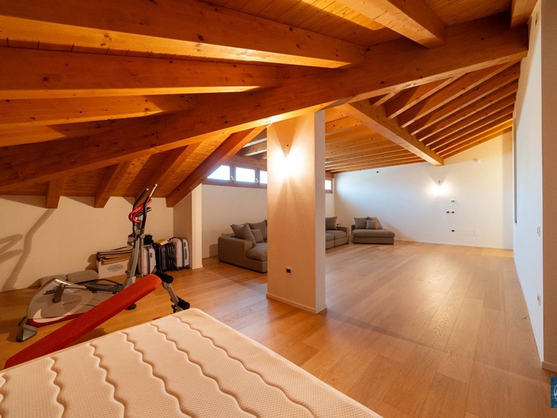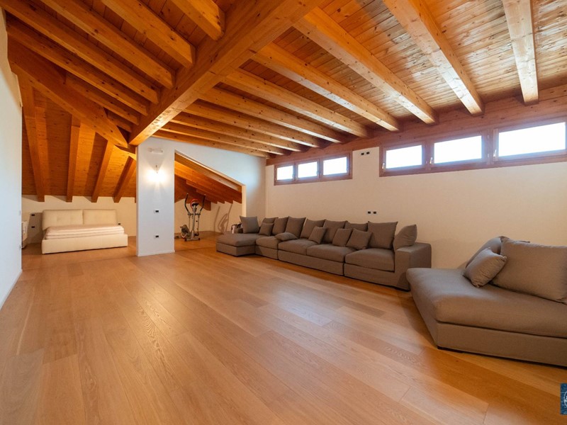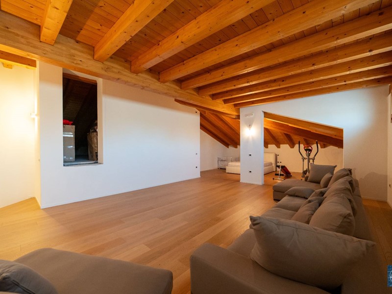 Una delle caratteristiche più affascinanti di questa abitazione è la zona mansardata, un ampio spazio versatile che puoi utilizzare come sala relax, zona hobby/sport, o per accogliere amici e parenti durante i momenti di convivialità. Completano la proprietà un garage doppio con apertura motorizzata, un magazzino, una centrale termica, un ufficio, una stireria e una taverna, offrendo una quantità di spazi perfetta per ogni esigenza.