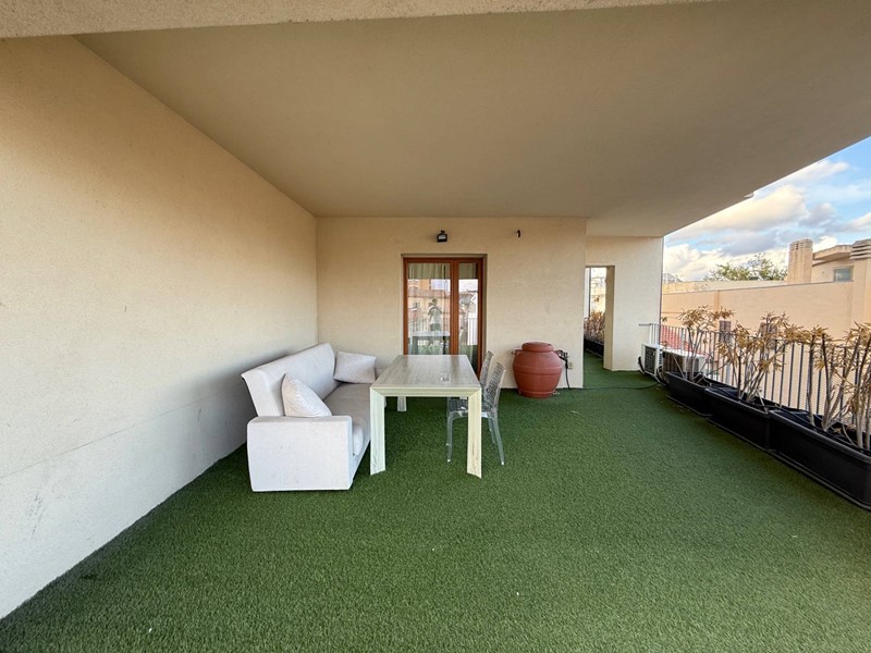 Ampio Terrazzo: Uno spazio esterno CHE PUO' ESSERE CHIUSO CON VETRATE AMOVIBILI ideale per pranzi all'aperto, cene con amici o semplicemente per godere del clima mediterraneo.