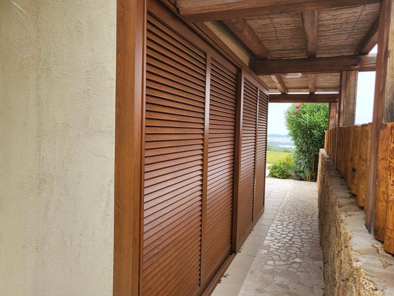 La villa è dotata di ampi armadi su misura, sia interni che esterni, progettati per garantire la massima organizzazione e praticità. Grazie a queste soluzioni, ogni oggetto trova il suo posto, mantenendo gli ambienti ordinati e piacevoli da vivere.