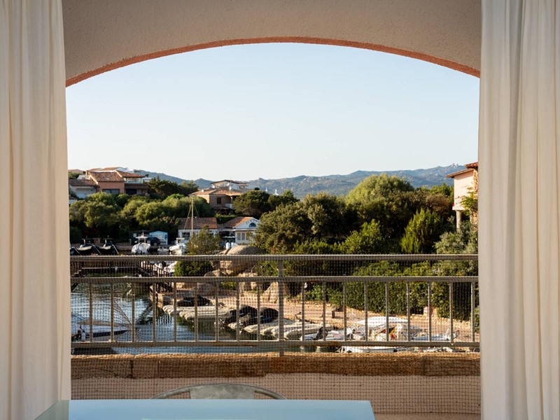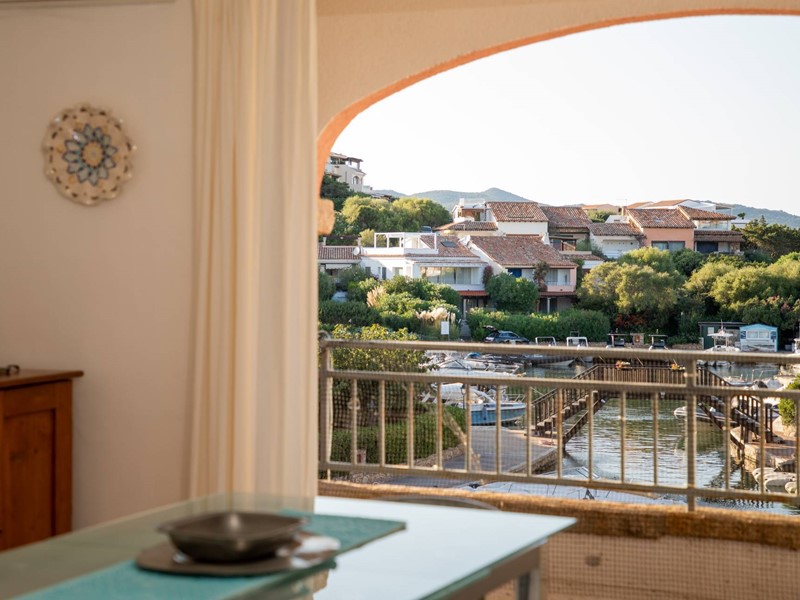 Da qui si accede al **terrazzino privato**, un vero angolo di paradiso che si affaccia direttamente sul canale della darsena. Un luogo ideale per fare colazione ammirando il risveglio del porto, per sorseggiare un calice di vino al tramonto o semplicemente per godersi la brezza marina e latmosfera esclusiva di Porto Rotondo.