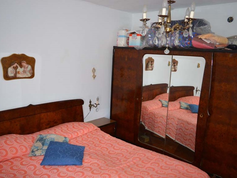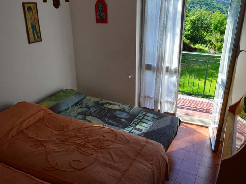 Al piano superiore troviamo il bagno con vasca, due camere da letto una delle quali con balcone e ancora una bella saletta/cucina con camino e balcone. Luce, acqua presenti, impianto di riscaldamento già predisposto, mancano solo gli elementi radianti e l'attacco al metano che è davanti a casa. Cortile comune davanti a casa e prato/orto e appezzamento boschivo di circa 2000 m sul retro e laterale.
