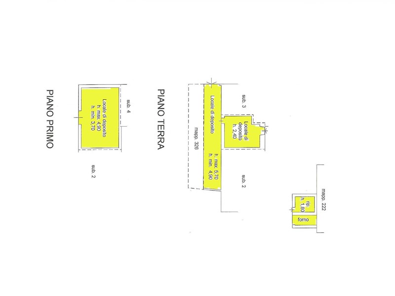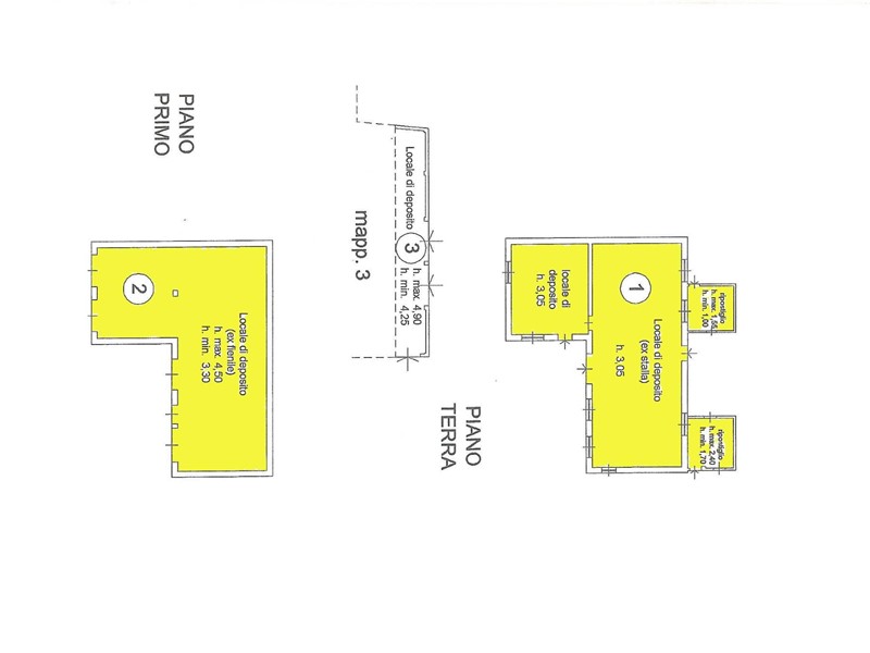 3) Fabbricato ex agricolo stalla e fienile composta da piano terra con ex stalla ora deposito di mq 125 ed al piano primo locale fienile di mq 125. Sul retro deposito di circa 25 mq.