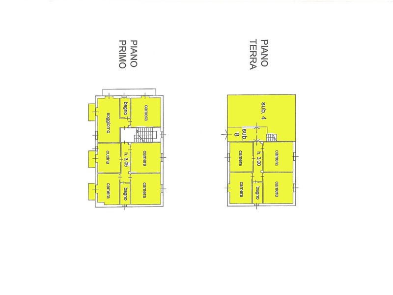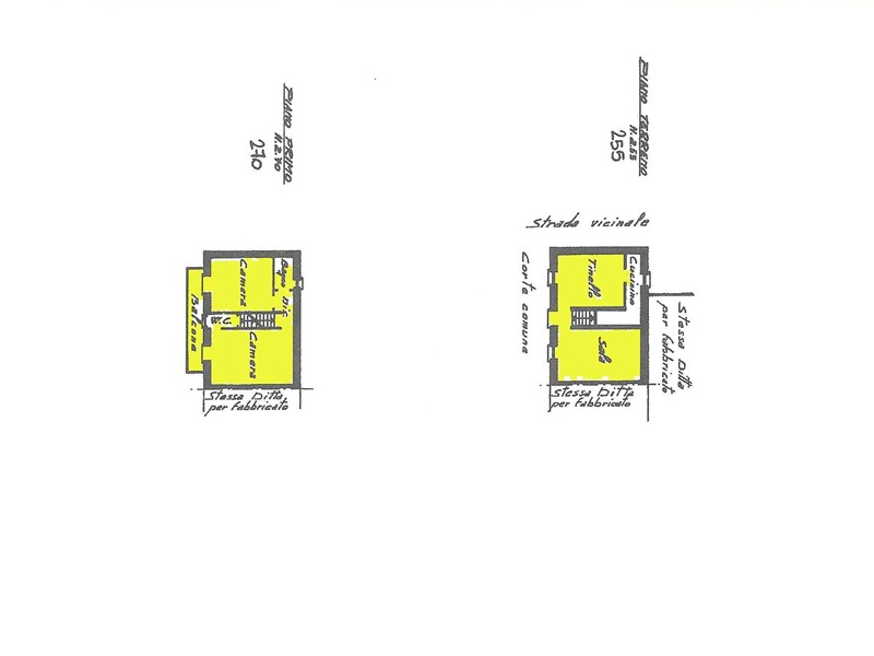 Unità abitativa a): piano terra con cucinino, tinello, sala, piano primo con 2 camere, bagno e terrazzino. Condizioni anni 70 ma da riaggiornare con serramenti in legno vetro semplice e finiture spartane.